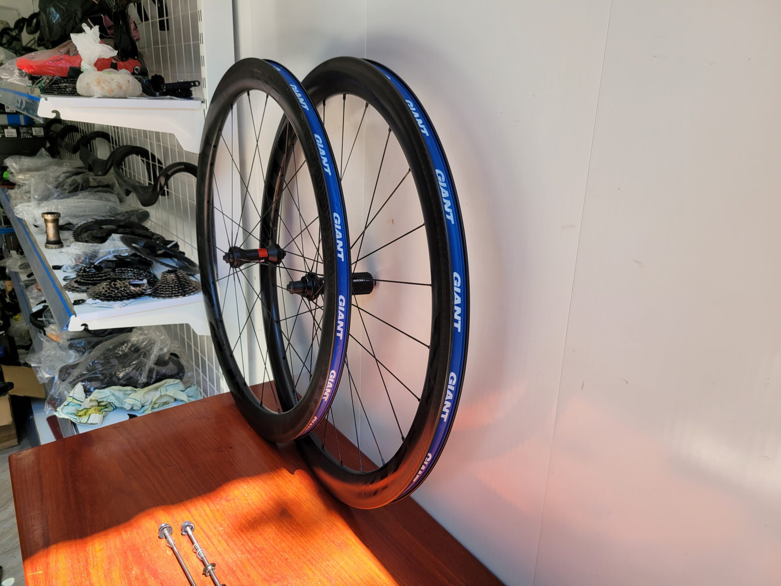 Cặp bánh rim Elitewheels 47mm rất đẹp niềng đời cao hông mập má thắng có gờ nhám giống AC3 căm loại dẹp đùm cao cấp DT240 xài vỏ ruột rời kèm cặp ti bật Titan